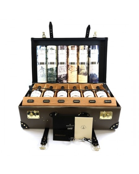 Discover the elegance of Macallan in a limited edition: 6 exclusive bottles, a luxury case designed by Globe-Trotter and the legacy of James Bond, a unique piece for true collectors!