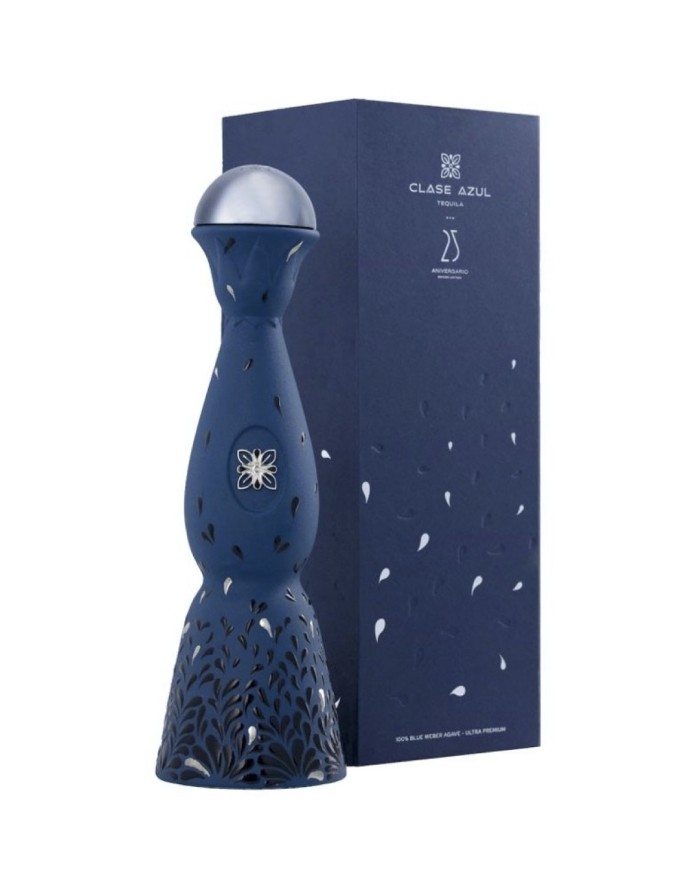 Pintada por completo en color azul cobalto. Su patrón plumeado, inspirado en semillas de diente de león suspendidas por el viento, representa cómo Clase Azul México se ha extendido por todo el mundo. Veinticinco de las pinceladas que adornan la superficie de la licorera se han pintado a mano en platino; una por cada año de nuestra historia.